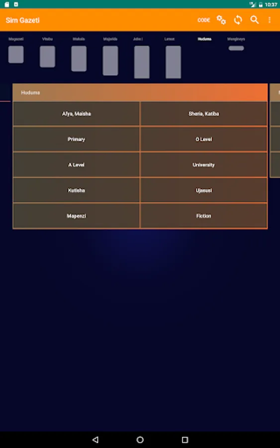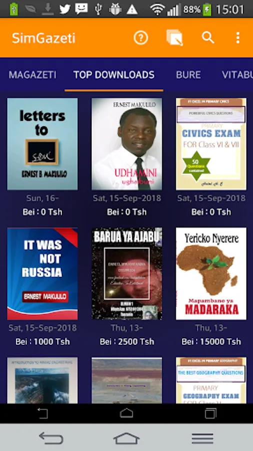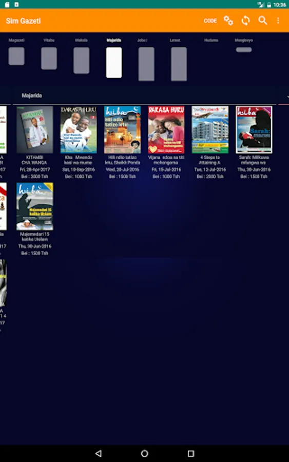 Since sim gazeti has was initially launched in Tanzania, it has rich Swahili contents, this enables a reader to access various publications such as books, newspapers, magazines and articles written in Swahili though English publications and other launguages are popular too.