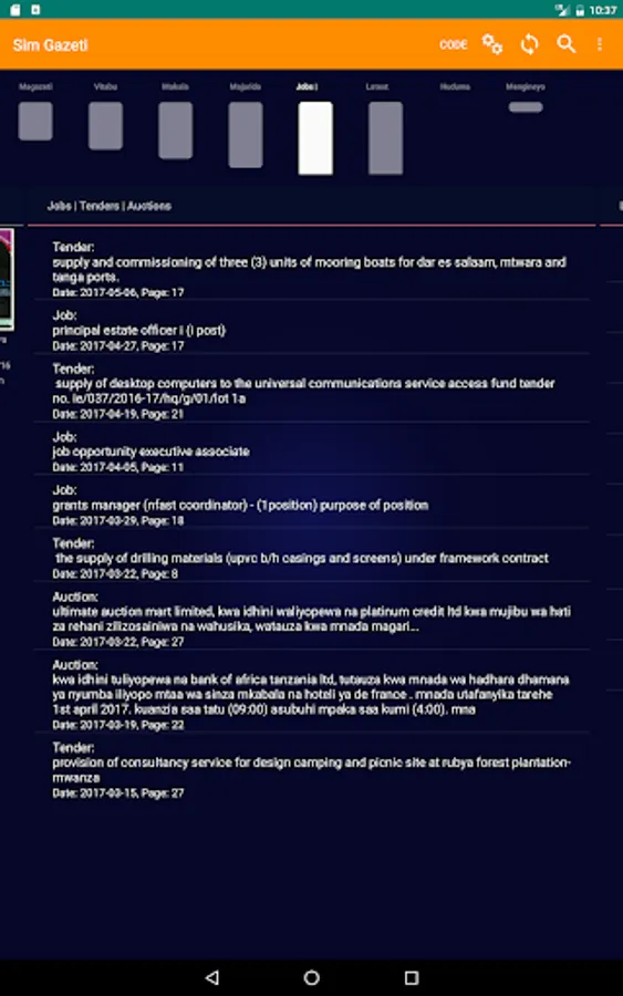 • Pata huduma ya tenda, ajira na mnada au minada ndani ya Simugazeti app, Pia mnada, minada na kazi.