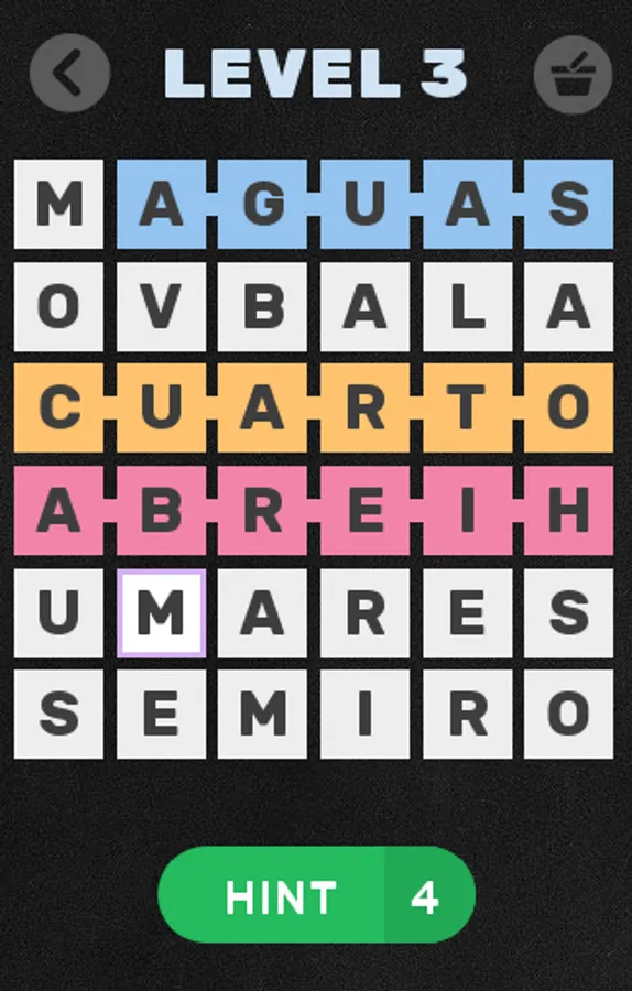 This alphabet soup contains words that are found in the different books contained in the bible starting with genesis, until today the levels of the game go in Genesis Chapter 20, so if it makes you complicated revise those chapters and return to the game, or ask the game for suggestions to see the letters where the words begin.