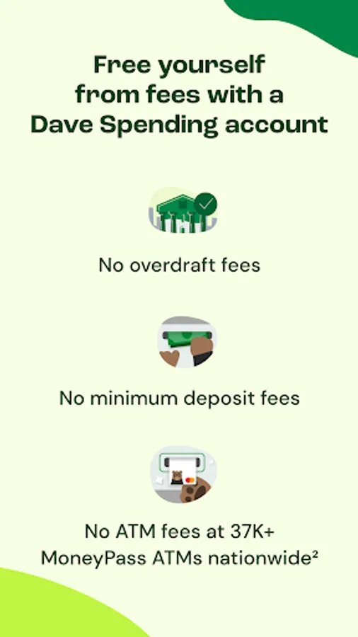 (1) ExtraCash™ is a DDA account with overdraft utility, advances are subject to eligibility requirements and identity verification. Taking an ExtraCash™ advance will make your account balance negative. Express delivery fees apply to instant transfers. Average approved advance is $120 as of October 10, 2022. See dave.com/extra-cash for more details.