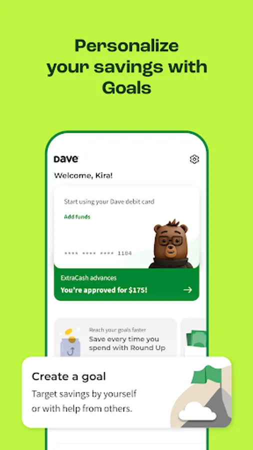 Earn cash back with Dave Rewards (3), save money with Dave Goals, and if you want to make more money, Dave can help there too! With Side Hustle, you can easily find and apply for side jobs and get that cash.