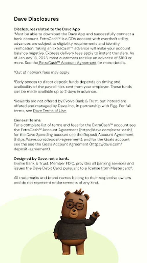 (3) Rewards are not offered by Evolve Bank & Trust, but instead are offered and managed by Dave, Inc in partnership with Figg.