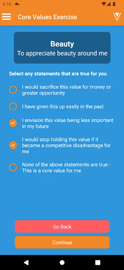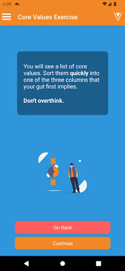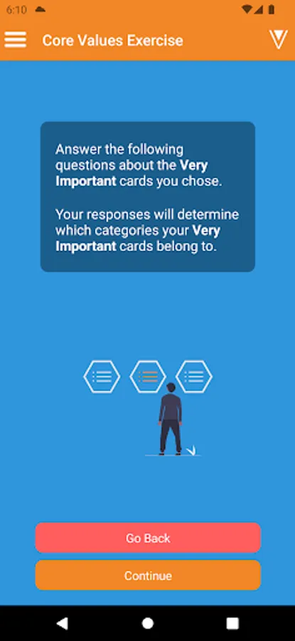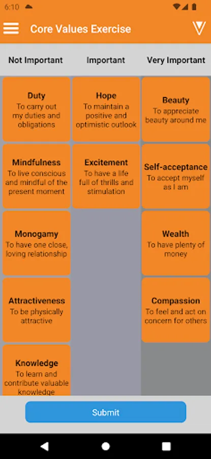 The Core Values Exercise app lets you quickly and easily run through the discovery exercise provided by The Vantage Group Inc. You can login with a Google or Apple account, and get going right away!