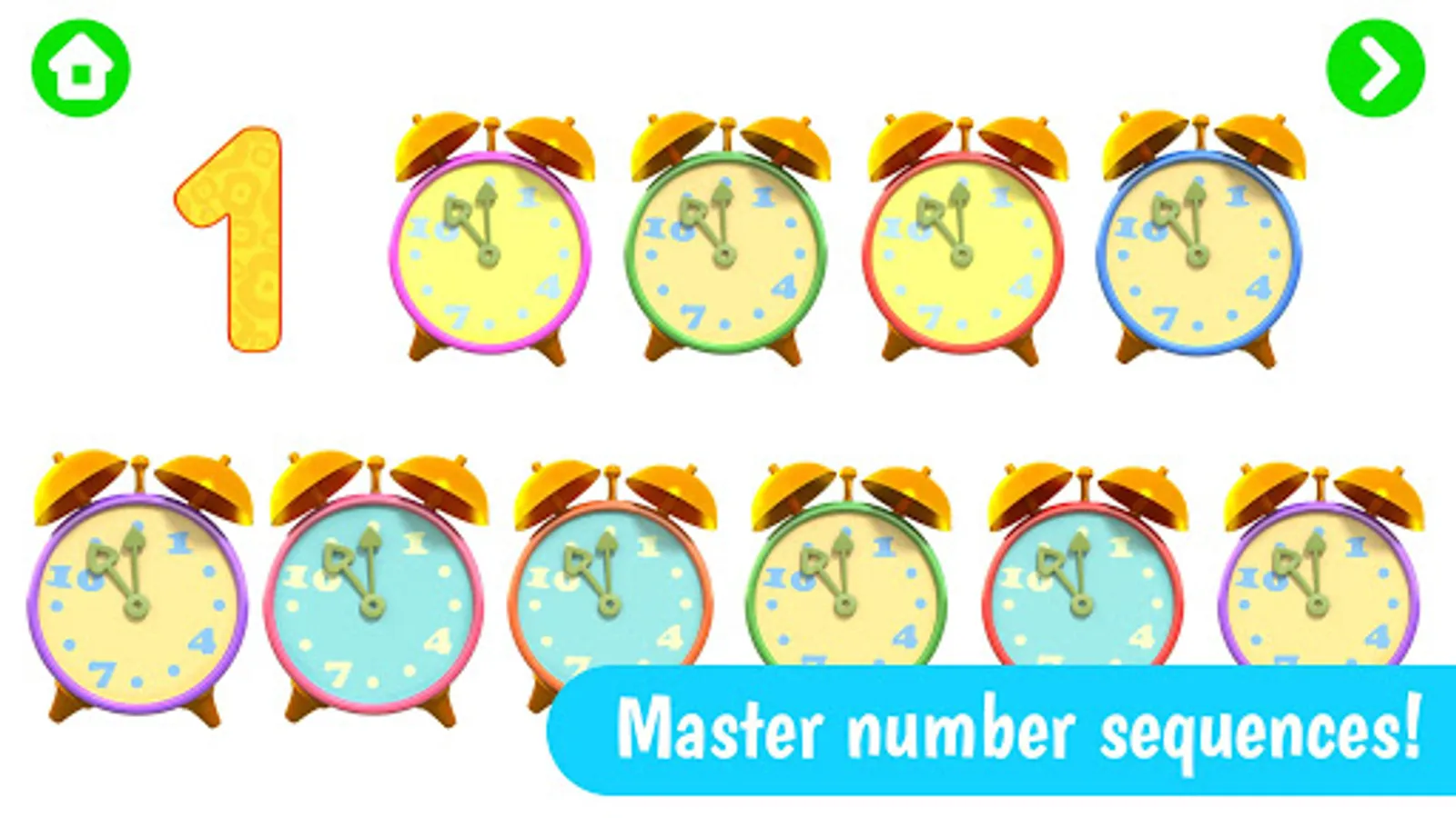 • Practice number sequences. We count magic stars, shiny butterflies, juicy oranges, and lots more beautifully animated objects. These are not just numbers in a textbook!