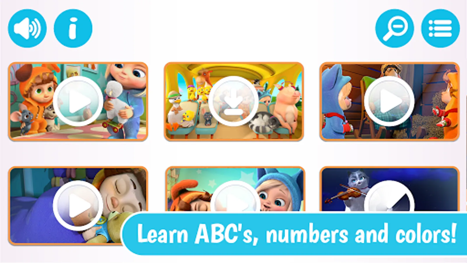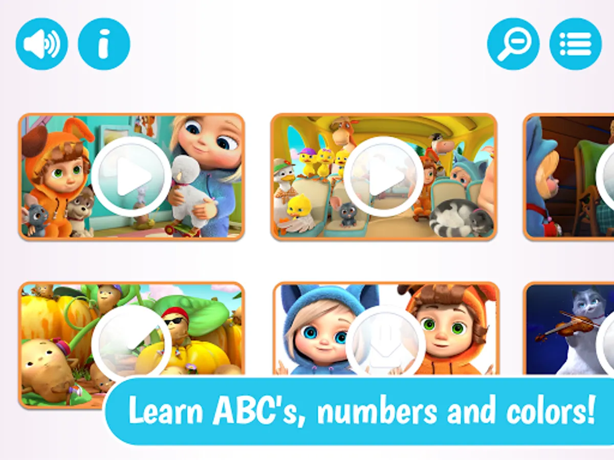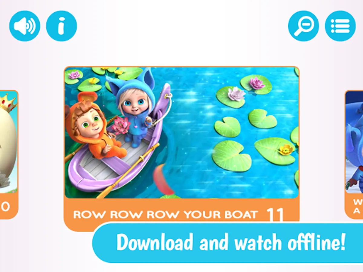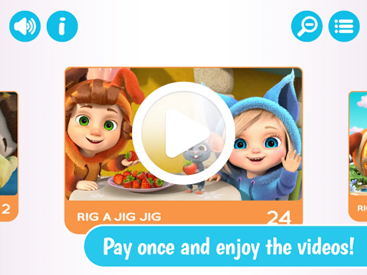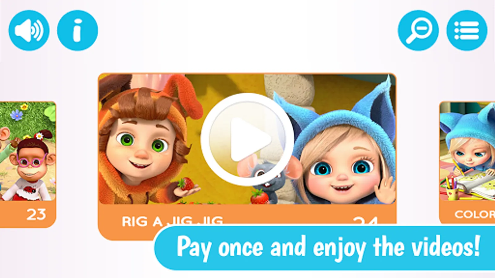 The app contains more than 100 videos by "Dave and Ava - Nursery Rhymes and Baby Songs" YouTube channel.