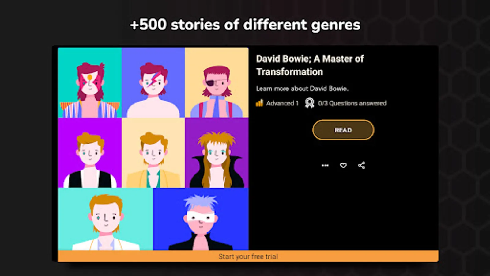 Learn at your own pace with this fun and free language learning app. If you are familiar with language learning audio books, you will love Beelinguapp’s innovative method to learn a new language. Listen to audiobooks narrated by native speakers, so you can train your ears. Learn from the very start - learners are fully immersed in their target language