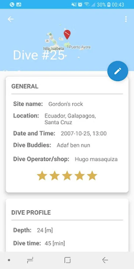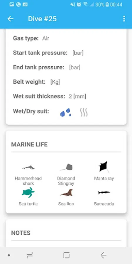 ✓ Digital dive log book - including field to record Marine life spotted on dive (Something i haven't seen, in most dive log apps).