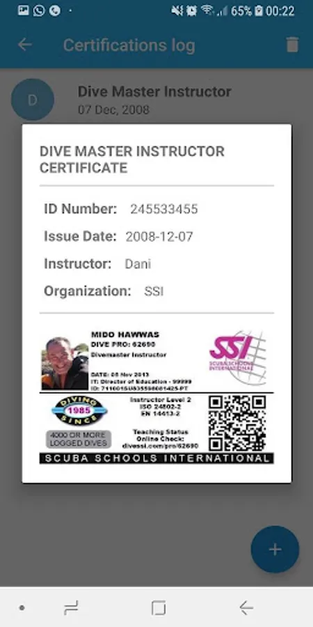 ✓ Dive Certifications log.