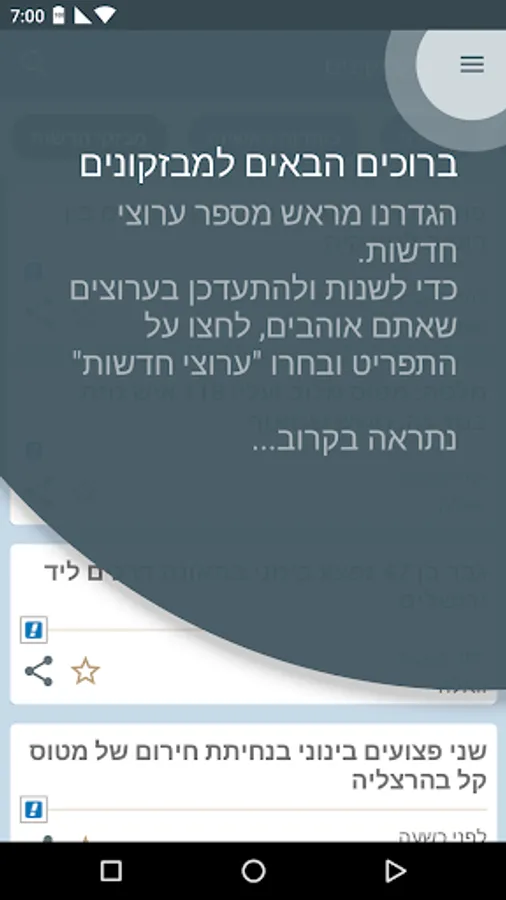 שלל עדכוני חדשות כתבות מאמרים ועוד.... במגוון קטגוריות מאתרי החדשות המובילים בארץ ובעולם, וללא פרסומות !!