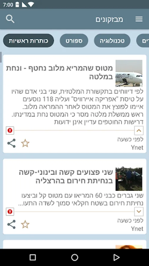 מבזקי חדשות, כותרות ראשיות, ספורט, כלכלה, טכנולוגיה, תרבות ופנאי.