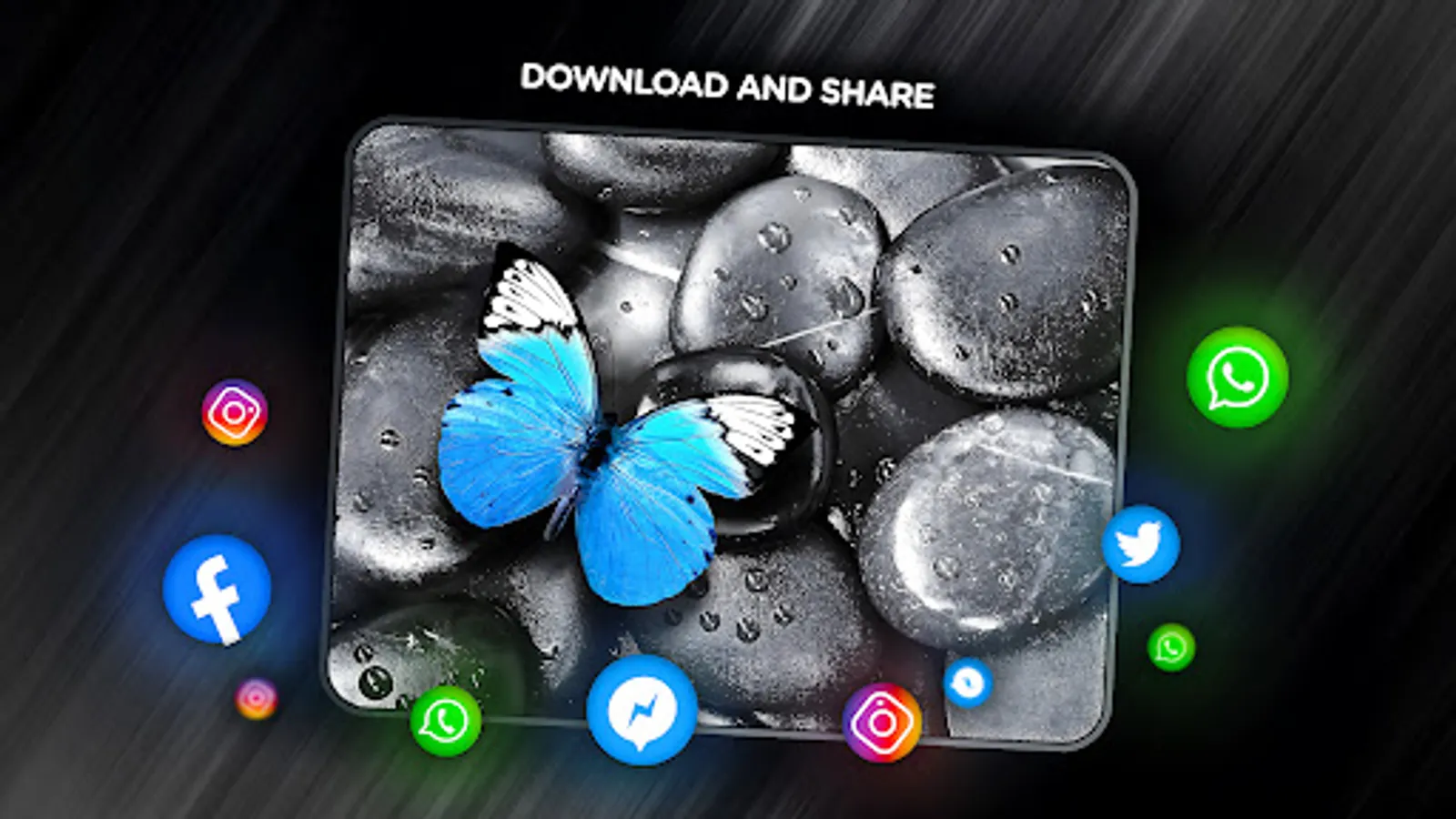 - Share selected backgrounds with your friends via social accounts, MMS or email
