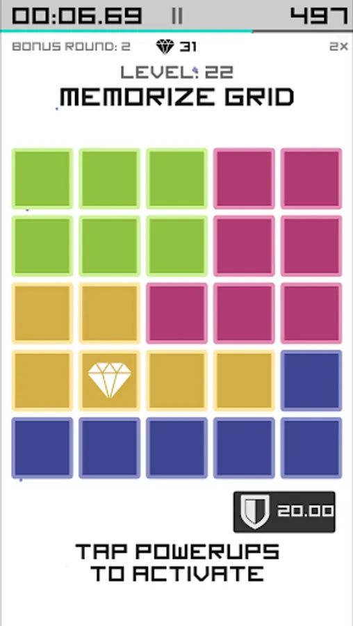 In Arcade mode, memorise a grid of colours and then flip your device face down. Flip it back and reveal the location of the tiles it asks for. Race against the clock and earn power-ups to help you along the way.