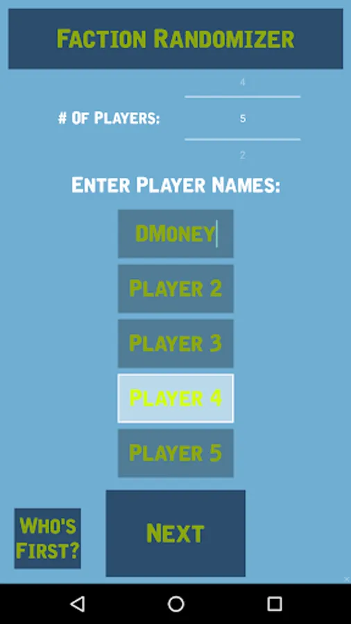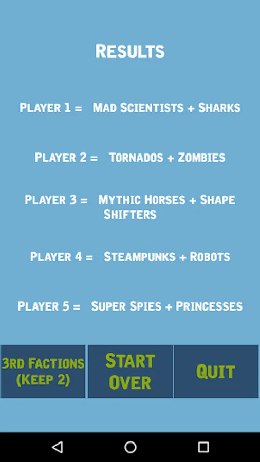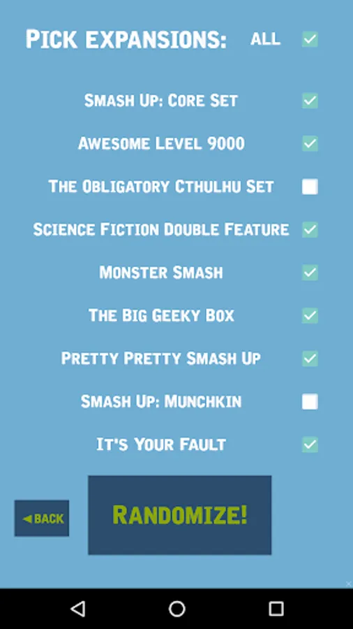 This is a very easy to use app that will give you a random faction to use in your Smash Up game. You can select 2-5 players, give them names if you want, and see who goes first! You can select which Smash Up expansions you will be using for each game. All currently available Smash Up expansions are included (through the It's Your Fault expansion)!! There's even options to receive 2nd factions and 3rd factions if you want to get 3 and choose 2 to use.