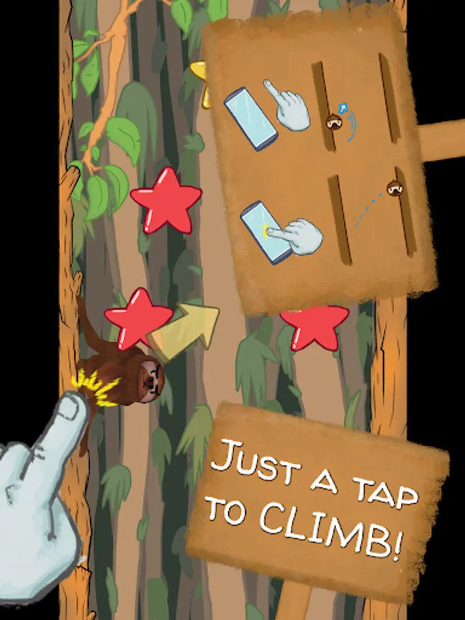Simply time your tap on the screen with the little sloths continuously moving aim, heading towards the tree on the other side. Continue bouncing up between the two trees to gain height.