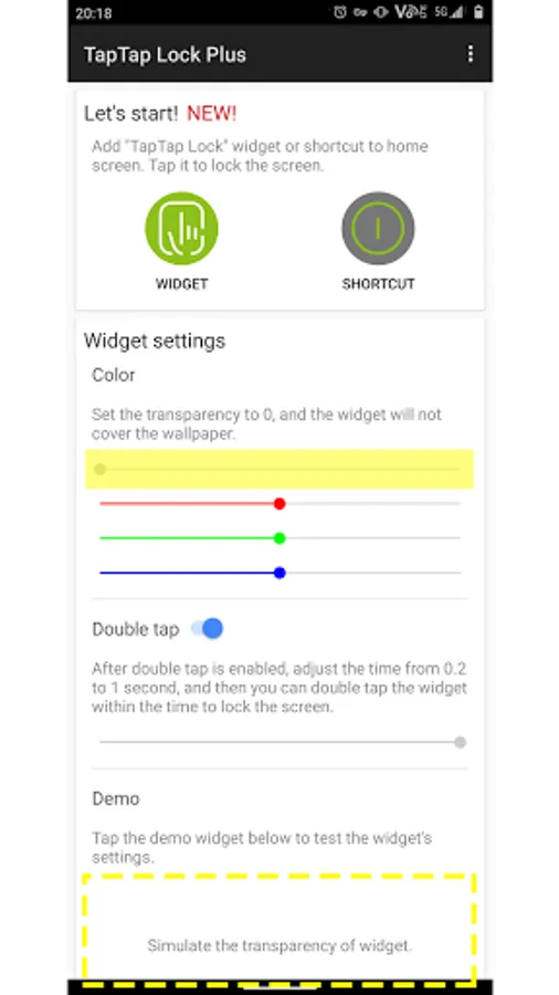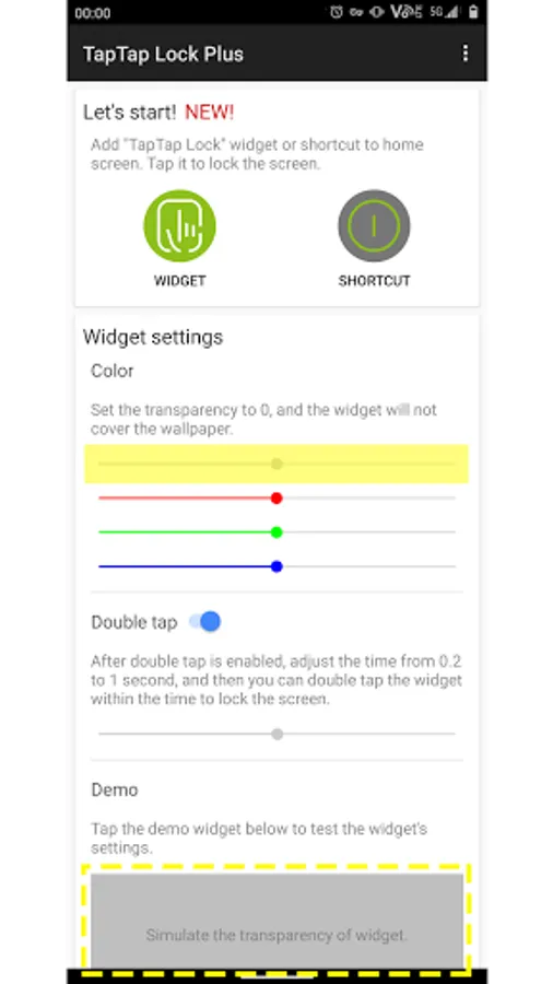 Operation: One tap or Double Tap are available in the widget. Just touch the widget to lock the screen, and you can still use fingerprint-unlocking function.