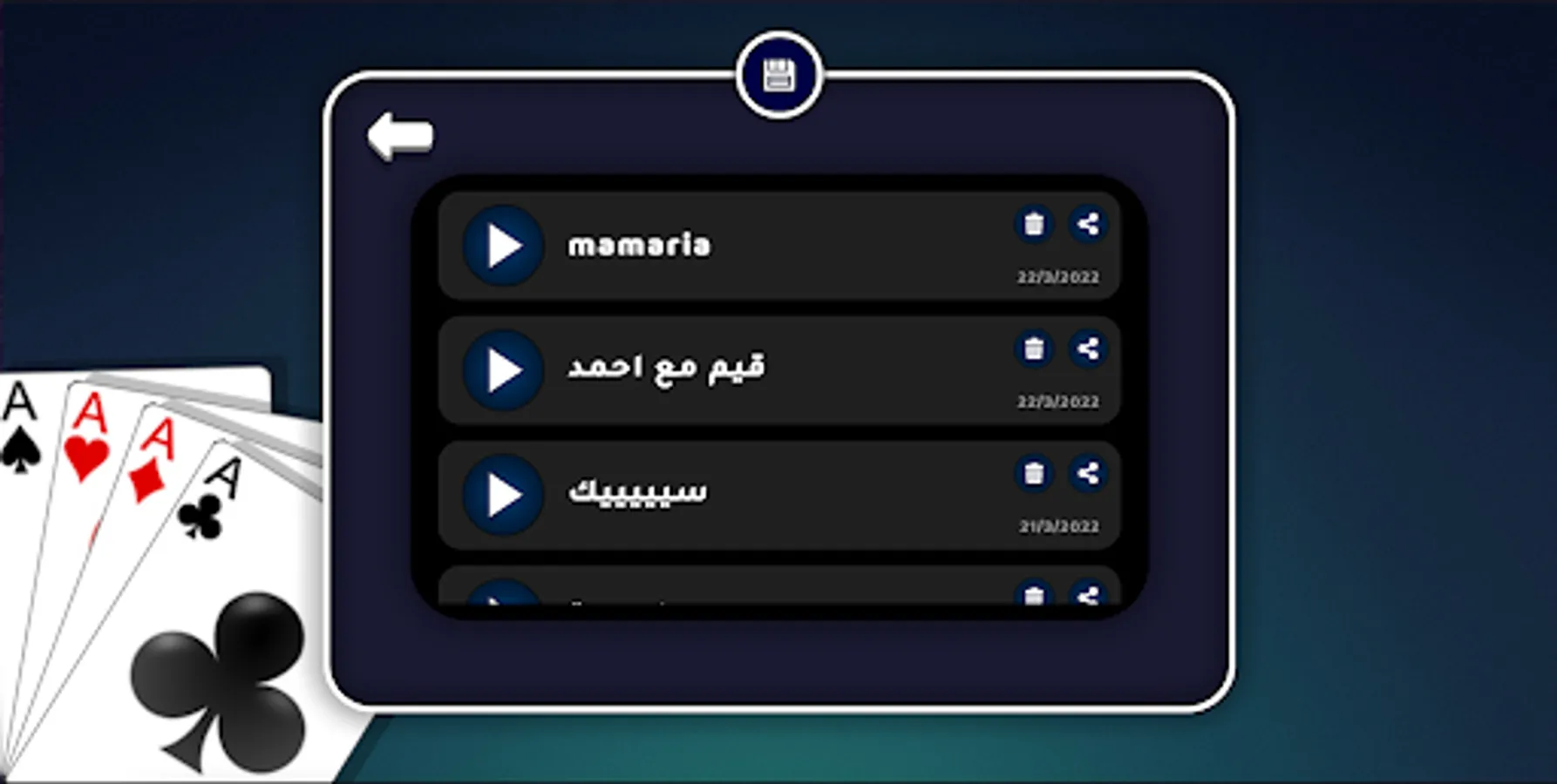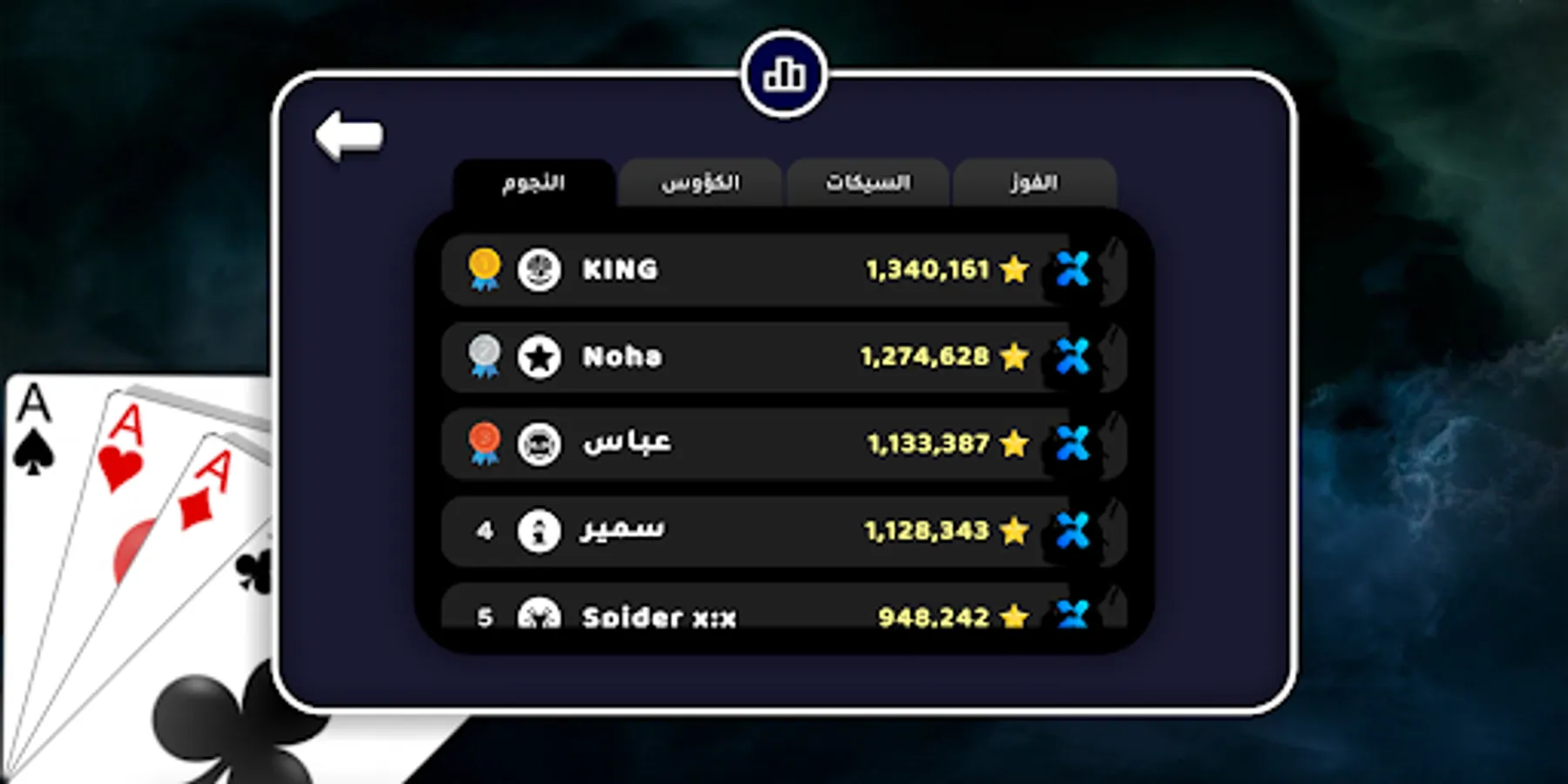 ♦ Market: different items can be bought using stars (received from collecting achievements), such items include: themes (main menu backgrounds), cards (playing cards styles), tables (in-game backgrounds), music (in-game background music).