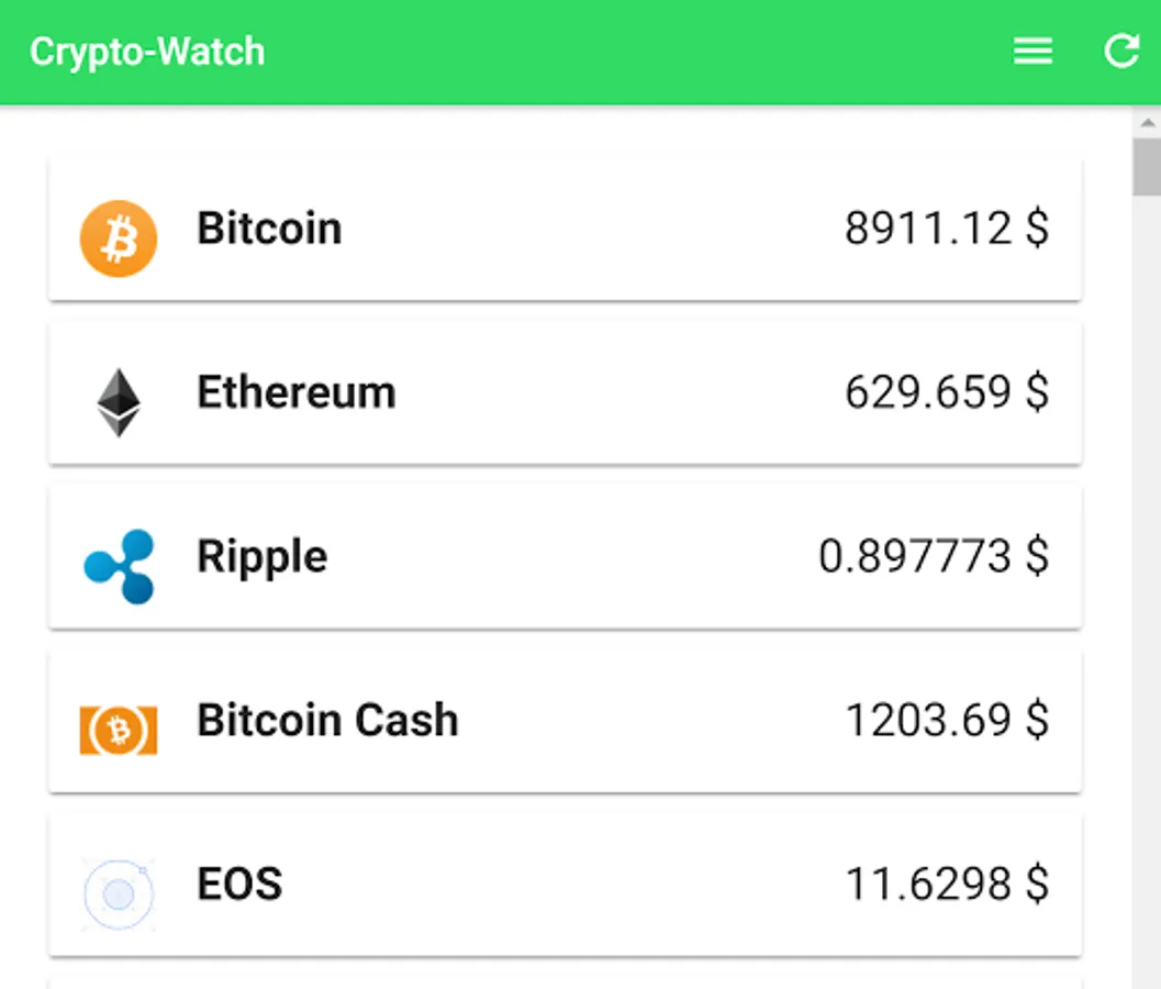 CryptoWatch displays Prices of more than 100 Cryptocurrencys like Bitcoin, Ethereum, Ripple, Litecoin and much more...