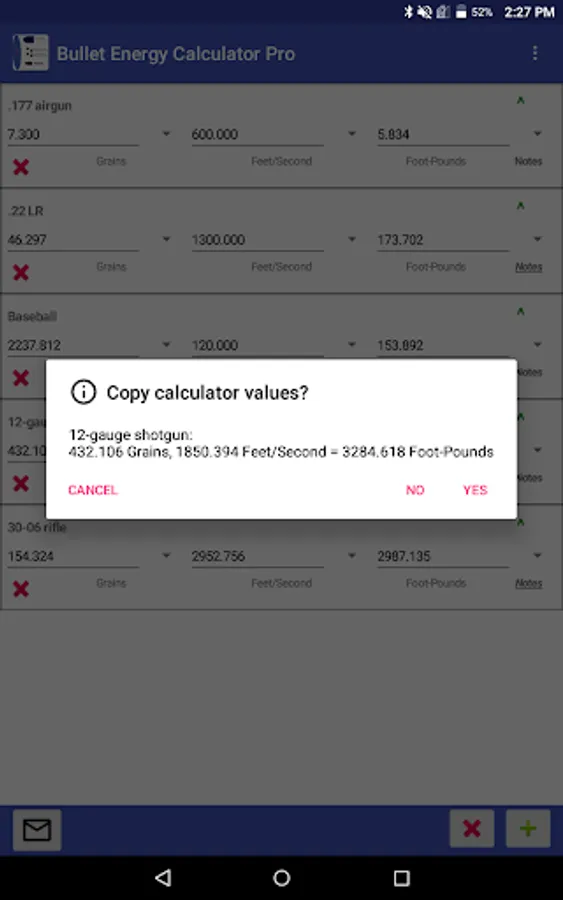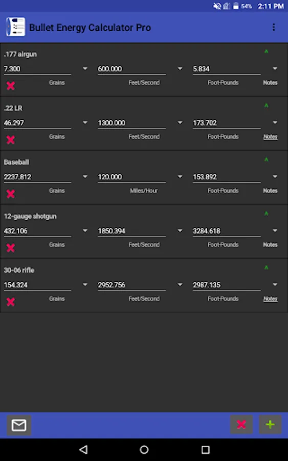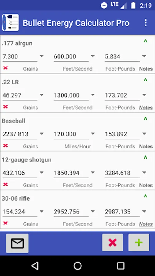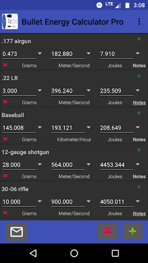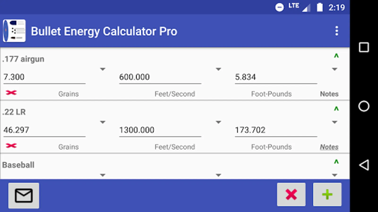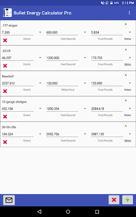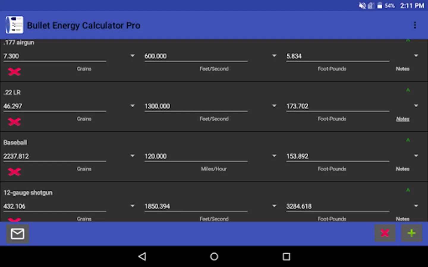 This app makes it easy and quick to calculate and compare multiple bullet energy at various velocities and mass values.