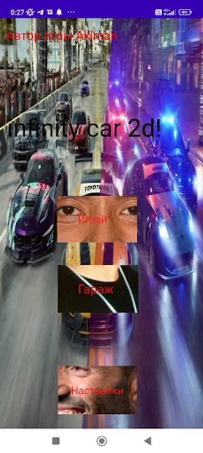 Infinity Car - The first racing game style game with elements of famous and funny characters and tons of cars! Garage where you can choose your dream car and fight on the highway against famous memes and characters. Set big records and get to the boss who will give you a surprise after the victory! (The boss will be added in the next update).