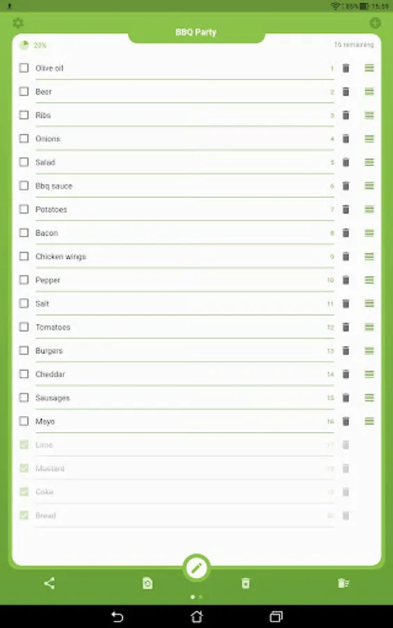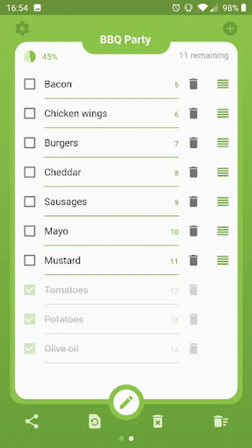 - Resetting list status (sets all items as "unchecked", so the list can be reused in the future)