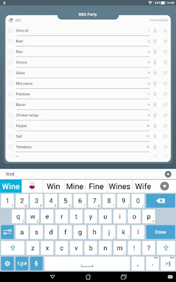 - Share lists with partner or friends (by choosing among 3 different styles: "app link", "plain text" or both)