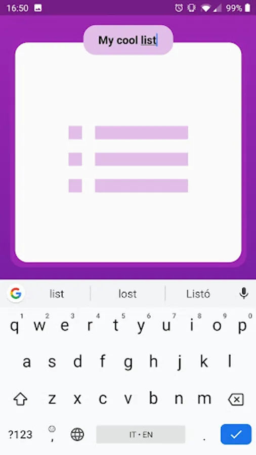 Listó instead, by focusing on simplicity and usability, avoiding unnecessary steps whenever possible (for instance in order to edit an item you you have simply to tap on that item and change the text as you like) and by allowing the user to customize the app as he likes, does its best to be a reliable and helpful app that the user will love to use.