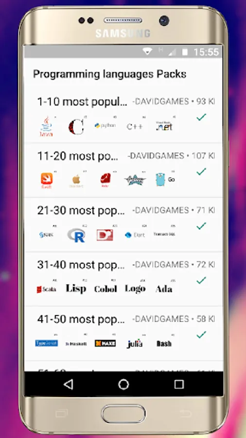 Position of each programming language according to its popularity.