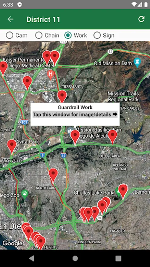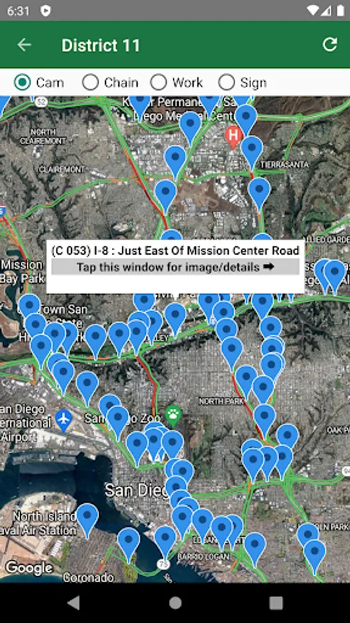 All road info and Caltrans cameras are on a Google Map with the current traffic layer.