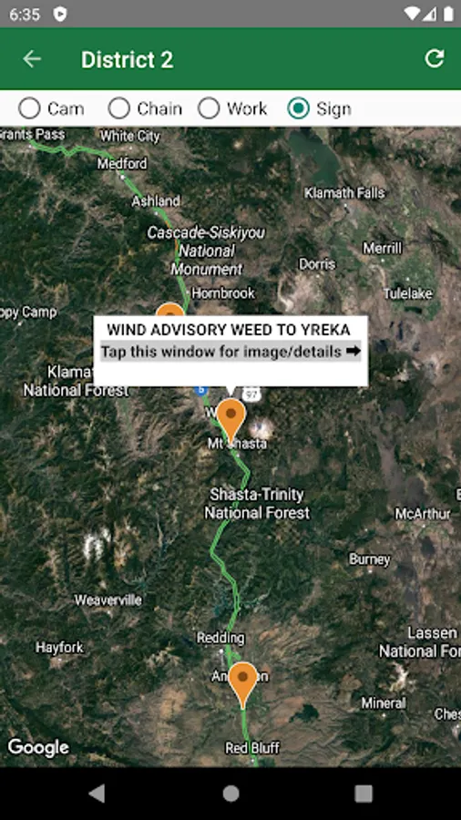 Browse Caltrans cameras, lane/road closures, chain control info, and changeable message signs.