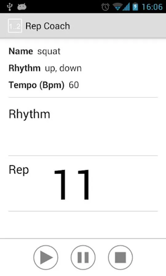 Rep Coach is a simple app to count out a rhythm at a specified tempo i.e. you give it the rhythm "Up 2 Down 2" and it will speak "up, one, two, down, one, two...." until stopped.