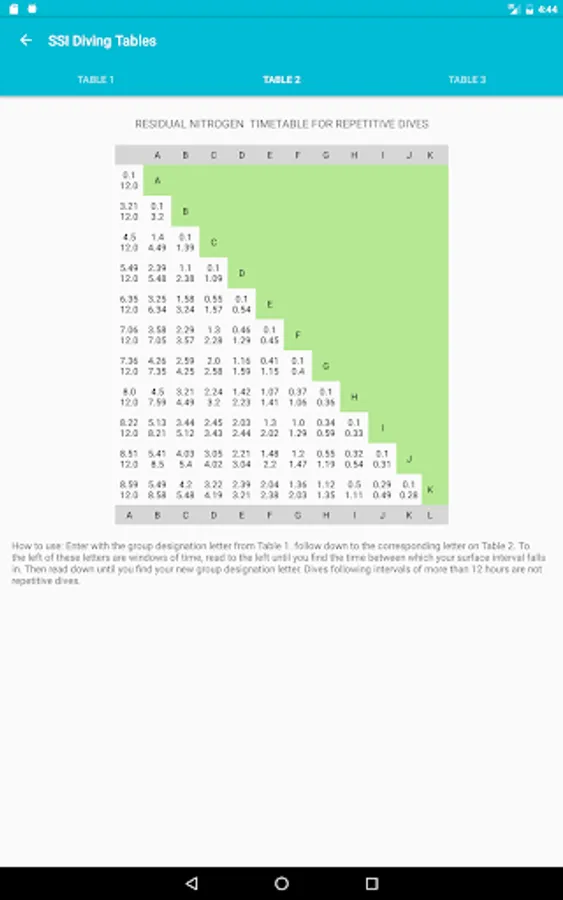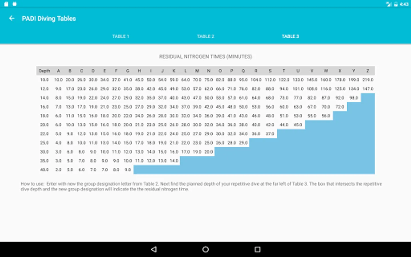 ✓ Choose between PADI or SSI Air dive tables for calculations.