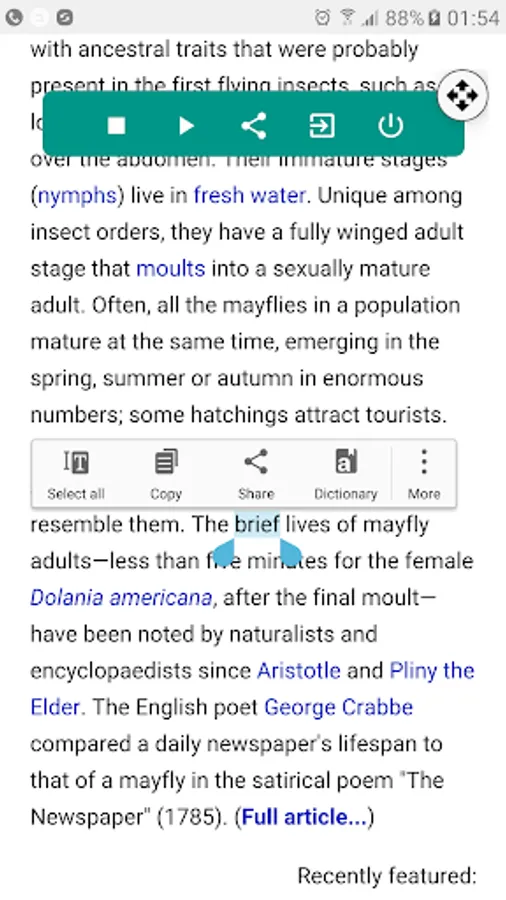 TTS Reader allows you to have any text read out to you simply by marking it and copying it to the clipboard or by sharing text or a webpage to the app.