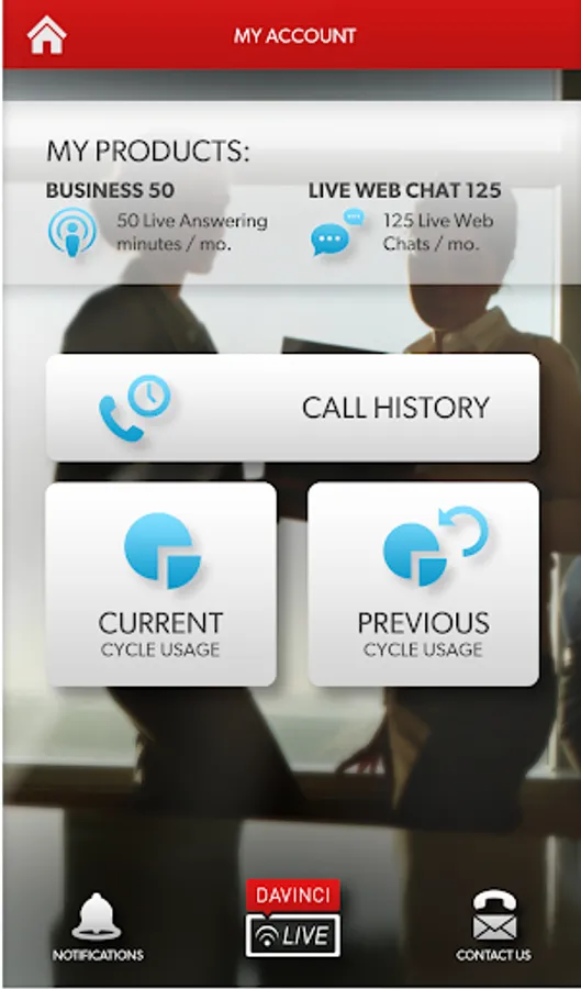 To take advantage of the Davinci LIVE app for Droid, you must be an active customer of Davinci live virtual receptionist services and have an active online account username and password. To learn more about Davinci, please visit us at www.davincivirtual.com. Current Davinci clients and need assistance with your account, please contact 877-693-2846 or callhelp@davincivirtual.com.