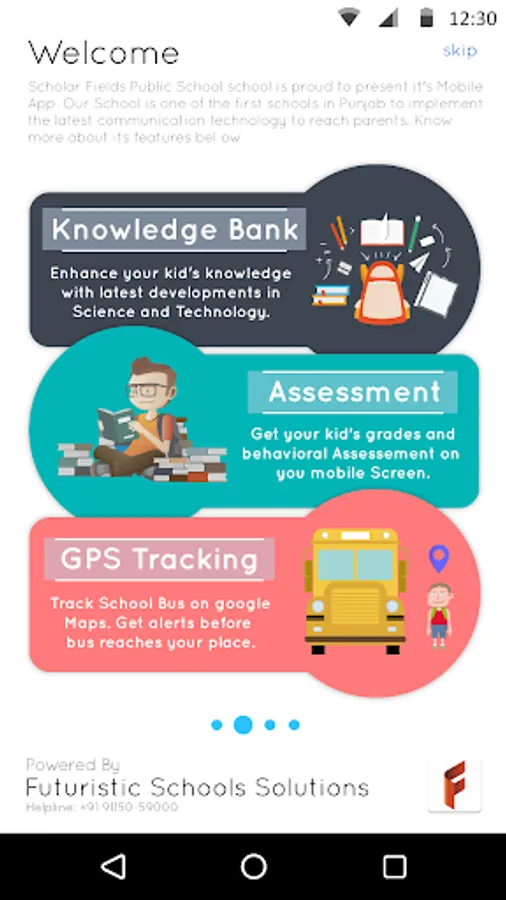On your palm, get all the updates regarding your ward studying at Dasmesh Public School, Faridkot. App features include Student attendance, Daily Homework, School Notices, School News, Class Marks and Graphical Analysis, Online Report Card, School Album, School Videos, Fee details, Competitions Registration and Result Declaration, School Calendar and Much More. Use the Username and Password provided by the school to login.