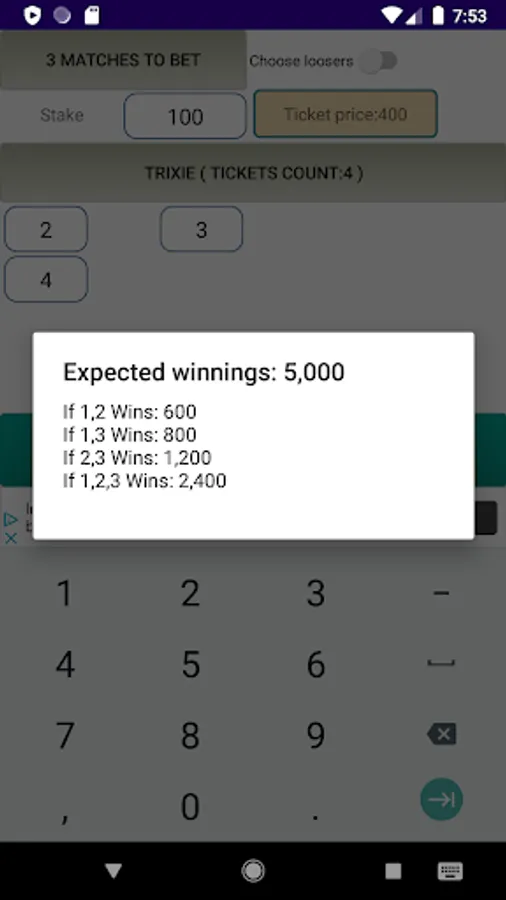 Treble: A Treble is one bet on three selections in different events. All three selections must be successful to have a return