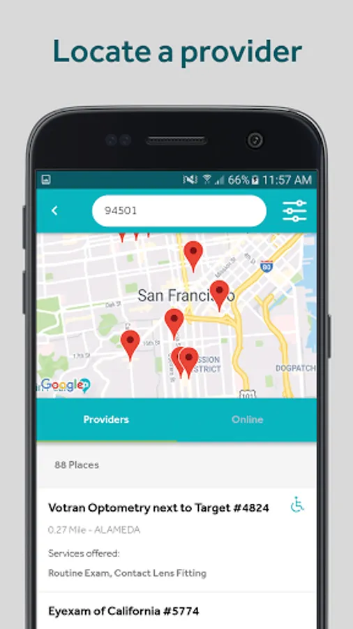 ● Locate an in-network provider-and use the app to call the provider and look up directions
