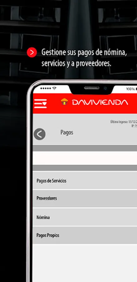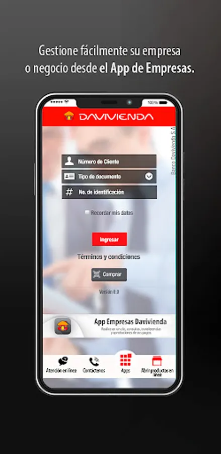 Consult the company's products and make transfers, payments of services, payroll payments and payments to suppliers. Authorize payments and transfers easily and securely through the App Davivienda Mobile Companies. You can also make transfers between your products, schedule withdrawals in cash from your savings or current accounts and make specialized transaction requests through the Virtual Office.