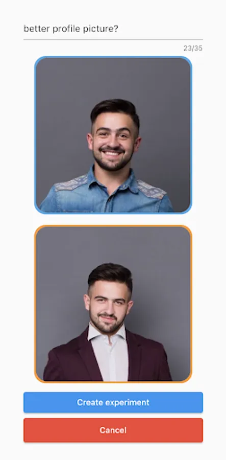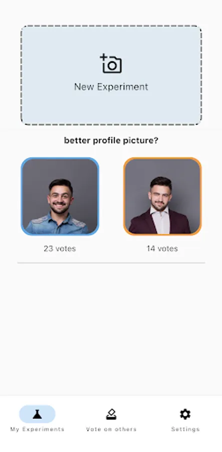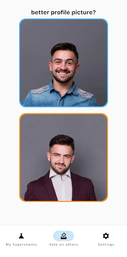 Discover the ultimate photo comparison app where you can upload two photos and let the community decide which one is better. See how your photos stack up against others and get valuable feedback. With a simple and easy-to-use interface, you can quickly upload your photos and start receiving votes in no time. Download now and see which one of your photos will come out on top!