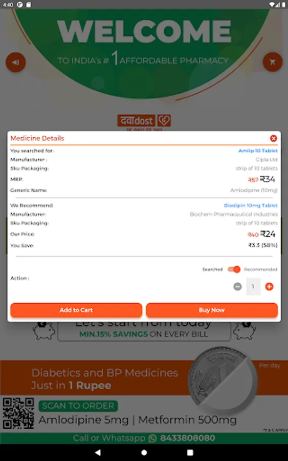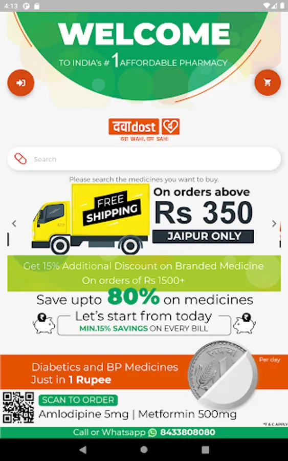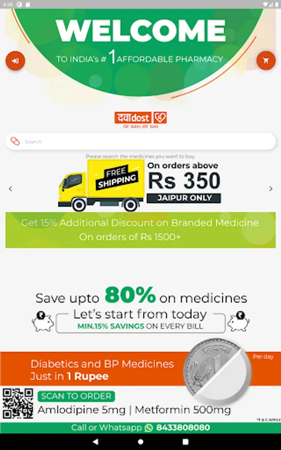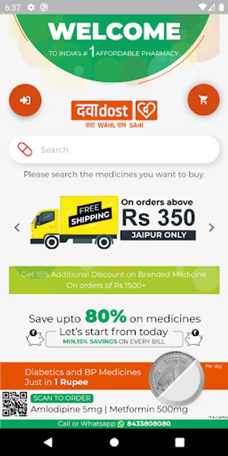 There are 2 lakh+ medicines available at best prices on our medicine app. On an average, every Indian is saving >50% of their prescription value by using Dawaa Dost app. All this in the comfort of your own home.