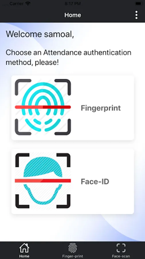 3- Choose an attendance authentication method for the day, either by means of a face scan or a fingerprint scan.
