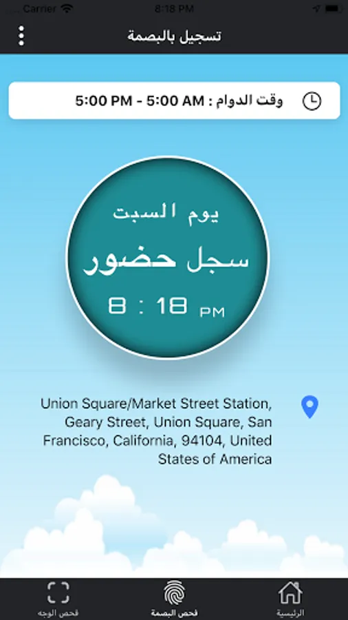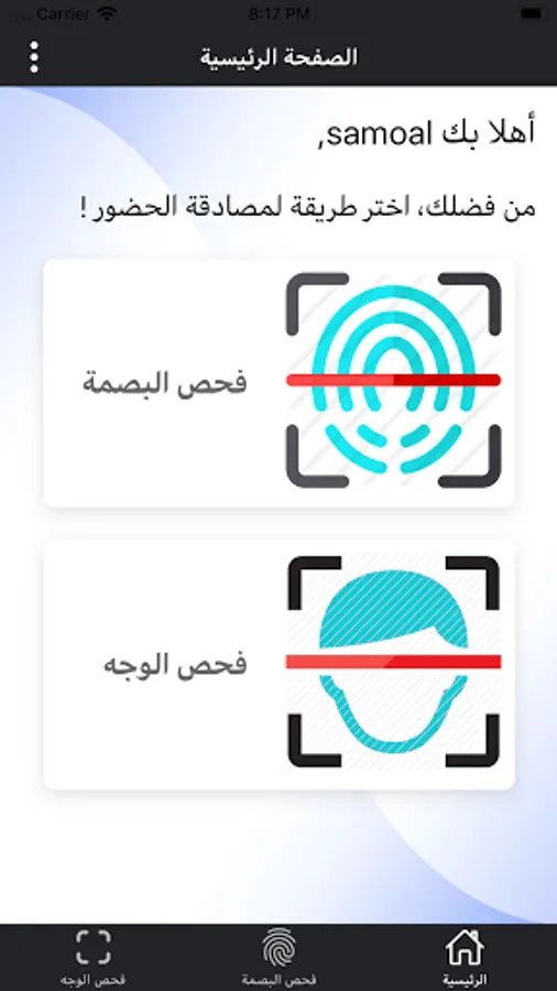 3- Choose the method of recording attendance and departure for this day, either by means of a face scan or a fingerprint scan.