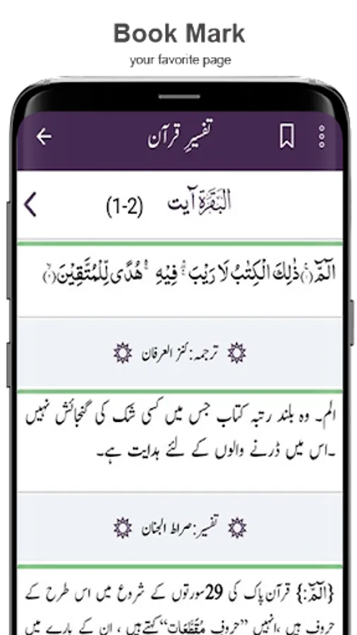 If you have to close Quran Majeed while reading, bookmark helps to resume from the same point. It will also help to mark your favorite Surah.