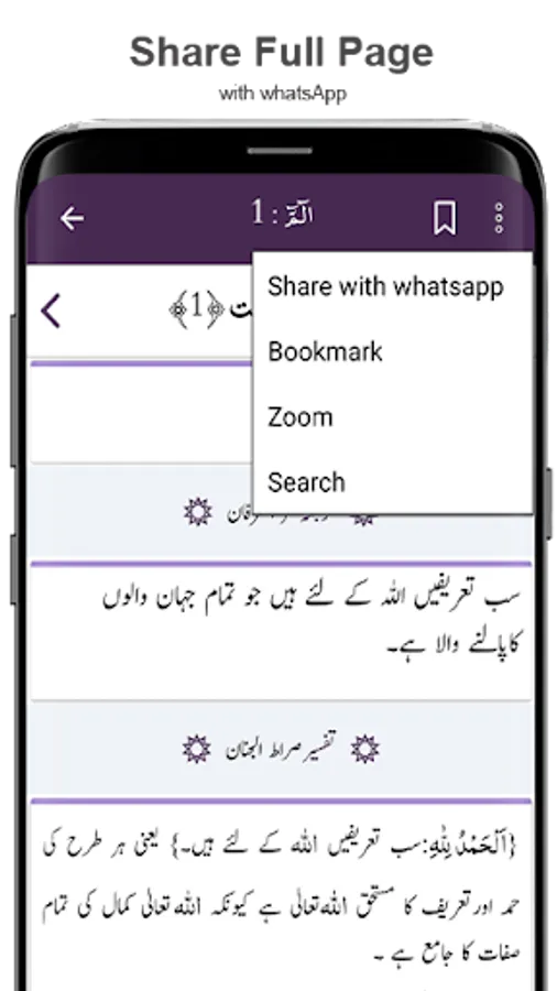 Sharing feature lets you share any surah with your family and friends. You can share it on WhatsApp or other social media platforms.