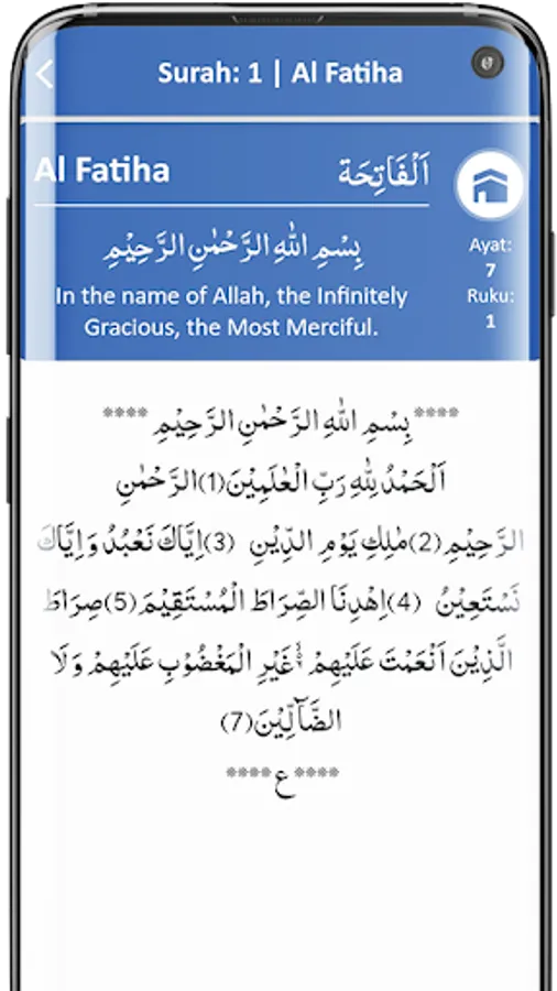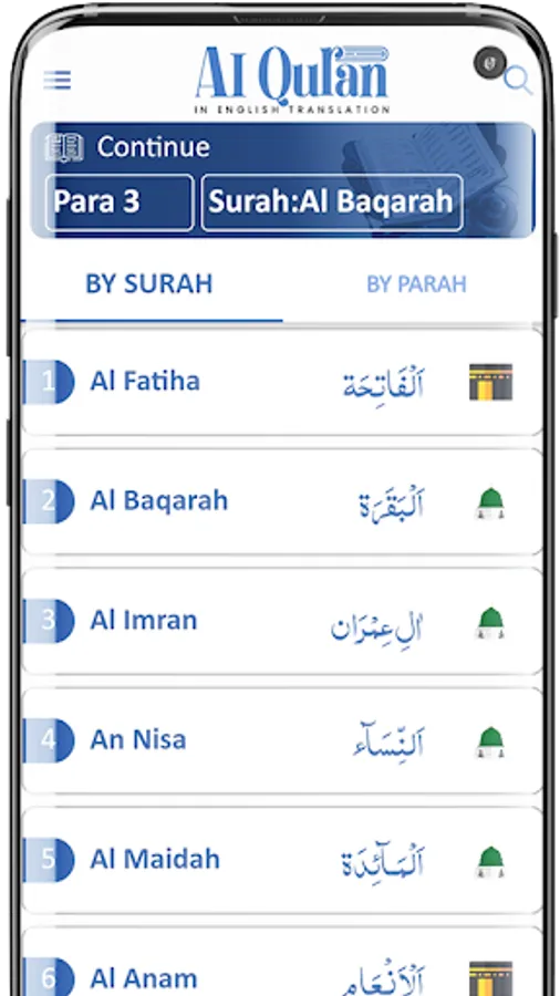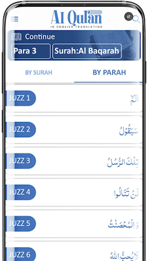 The app has Surahs and Paras. This option allows you to read Quran in English while also knowing which Surah or Para you are on.