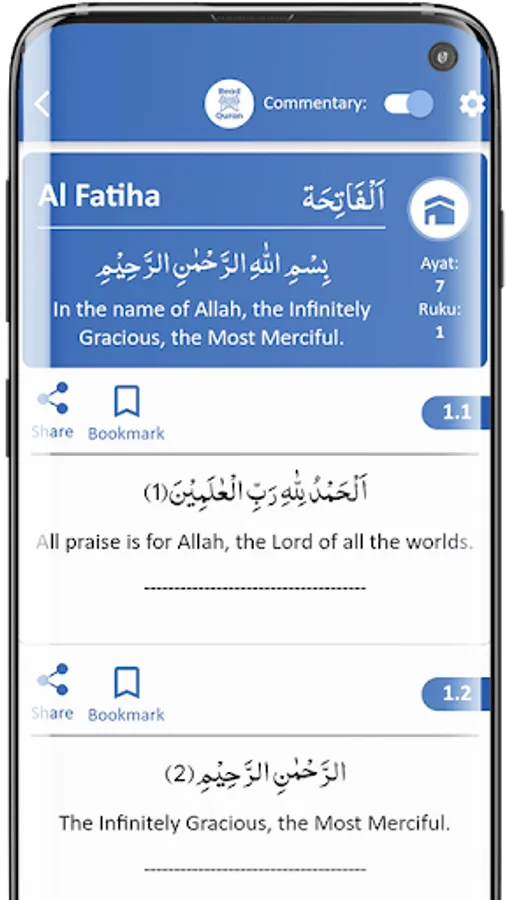 This app offers Quran Tafseer in English. With tafsir or commentary option, you can understand the context of each verse.