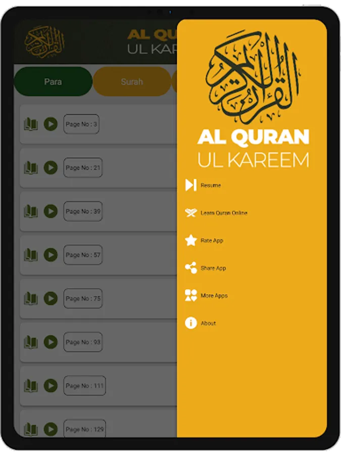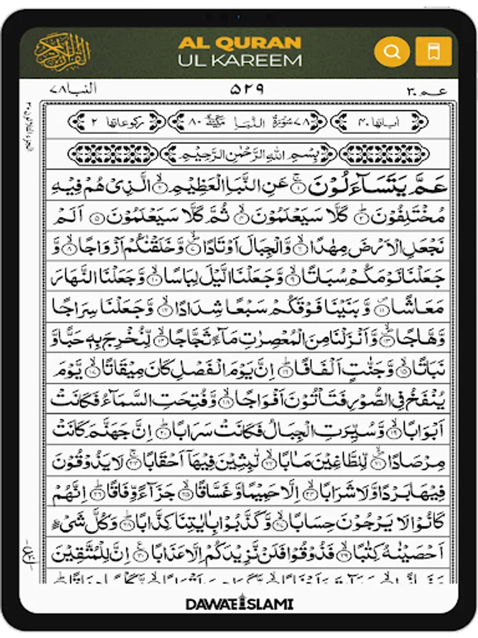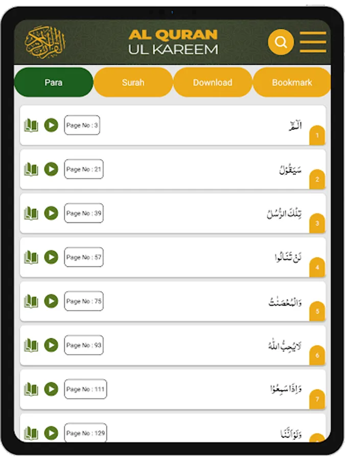 For user’s convenience, para wise indexing has been added so users can easily read and listen to the Holy Quran.