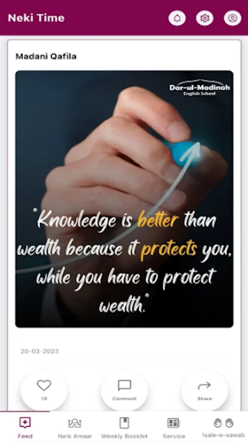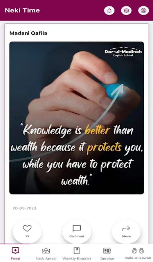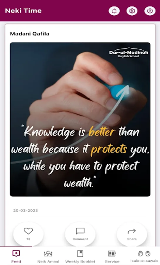 Feed Page : Keep your self updated with Islamic Knowledge on daily basis through Quranic Aayat, Translation, Tafseer (Interpretation of Quranic Aayat), Hadees, Islamic Quotes and many more