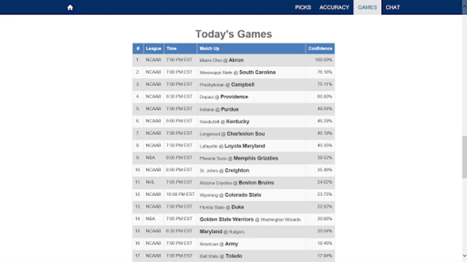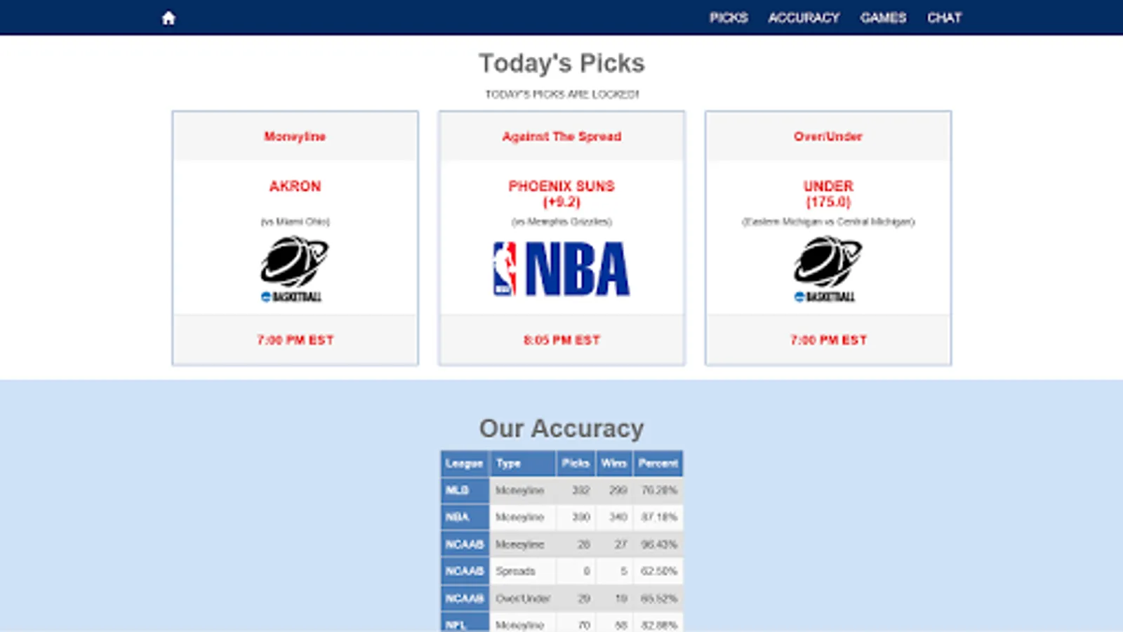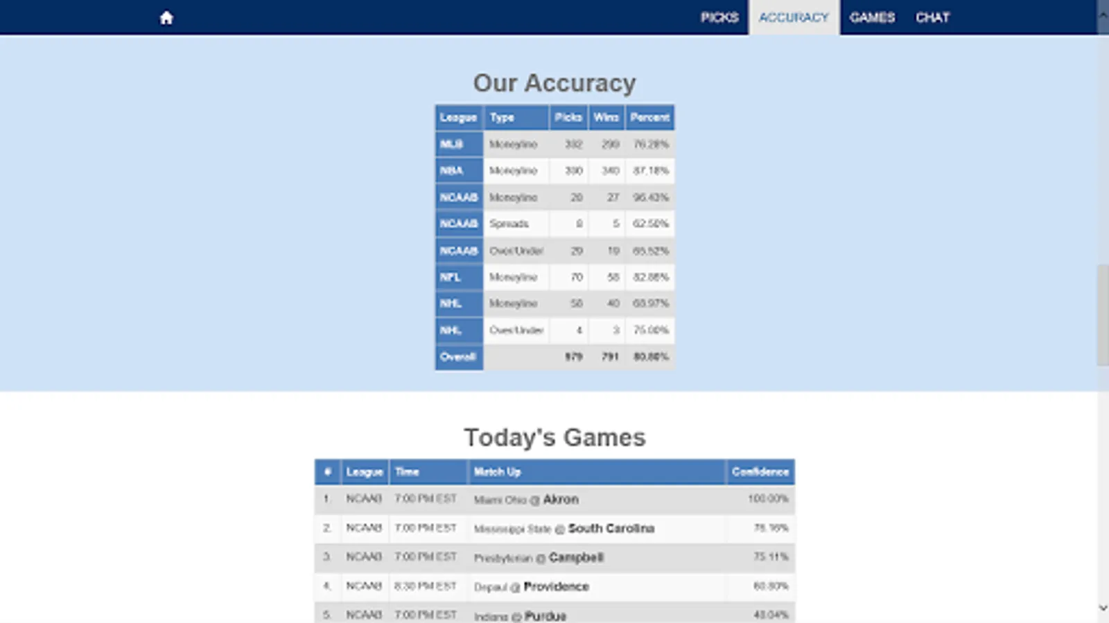 Our performance speaks for itself. As of January 30th, 2017 we've picked over 900 games with an accuracy of over 80%. Our ongoing accuracy is updated every day and published in the app.