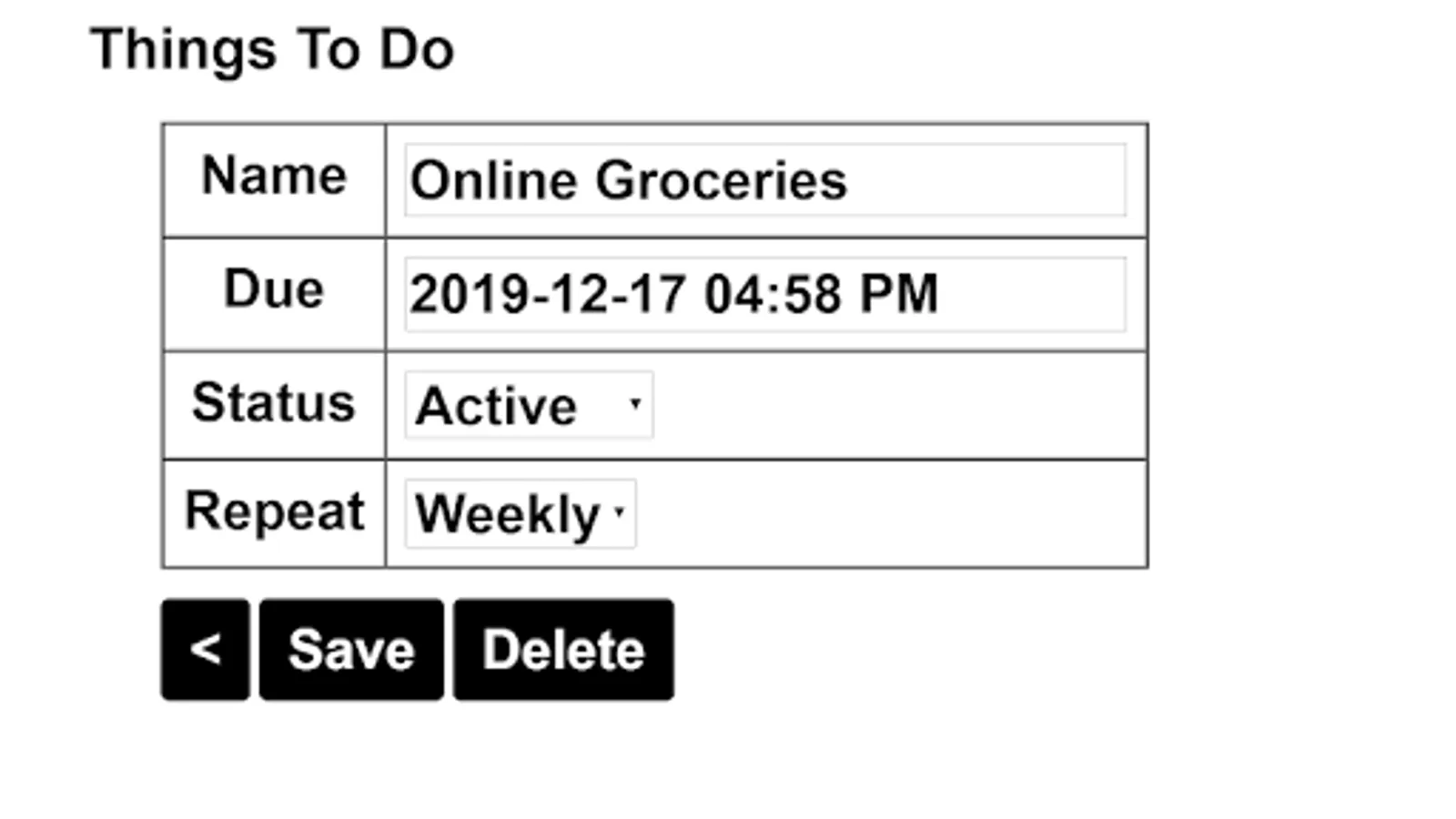 Simple "To Do" list manager with single or repeating things to do. No ads, no registration.