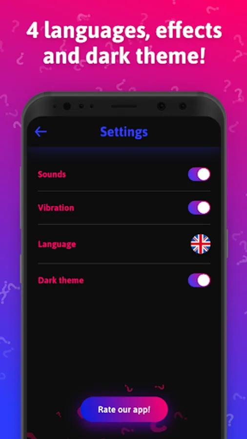 To play the social party game Guess It let's split into two teams (soon available more) and then start the game by handing the phone to one of the people. Let's also choose a person from the opposing team who will check the player whether he follows the rules of the game. When the round is over, the opposing team starts its turn.